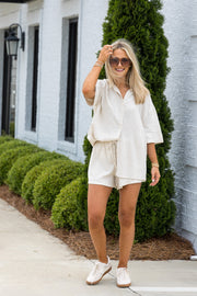 Mollie Short Sleeve Oatmeal Short Set *Final Sale*