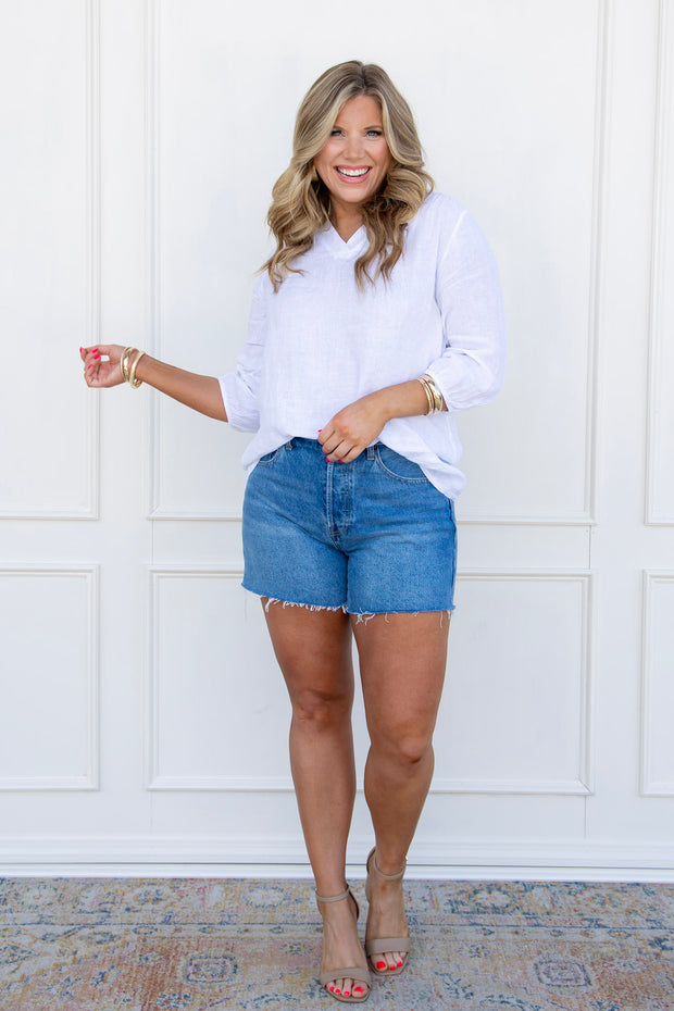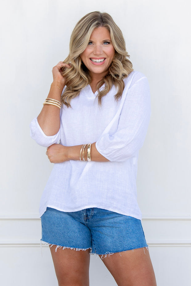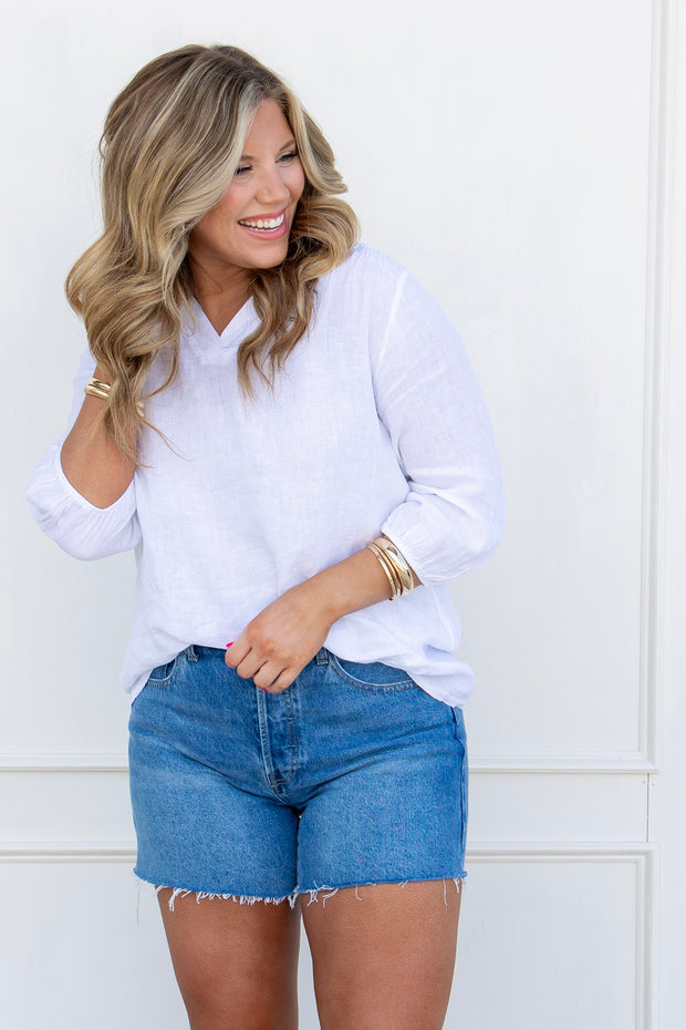 This linen v-neck tunic is made from high-quality linen material, providing a lightweight and breathable feel. The v-neckline adds a touch of elegance, while the long sleeves offer ample coverage. Perfect for any occasion, this tunic is a must-have staple for any wardrobe.