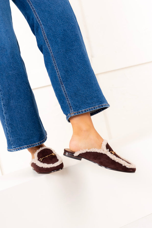Your favorite mule is ready for cold weather: the Linnie Cozy features a shearling-trim with a horsebit detail and mini stacked heel. Try pairing them with midi hems to make casual elegance your own this season.