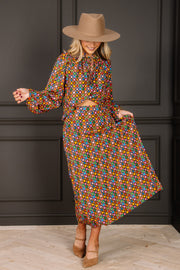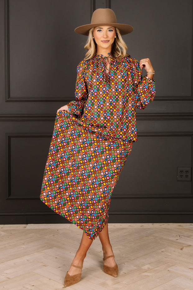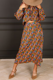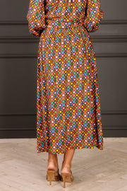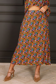 Vibrant multicolor polka dots meet effortless style in this high-waisted maxi skirt. Breathable fabric keeps you cool while convenient side pockets add practicality to the flowy silhouette and elastic waistband to ensure comfortability .