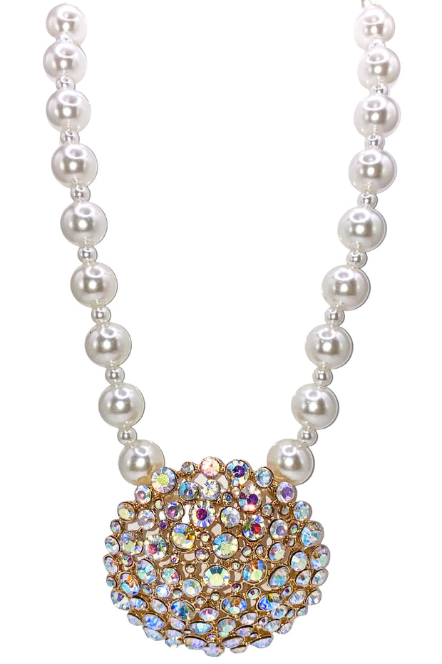 The Long Island Necklace is an elegant accessory featuring a pearl beaded design and a stunning brooch pendant. This necklace adds a touch of sophistication to any outfit, making it perfect for both casual and formal occasions.
