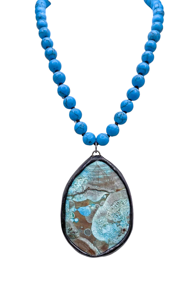 This Long Life Living Necklace features a stunning turquoise pendant on a long necklace. The vibrant color and length of this necklace make it a versatile accessory that can elevate any outfit. Crafted with high-quality materials, this necklace is made to stand the test of time.