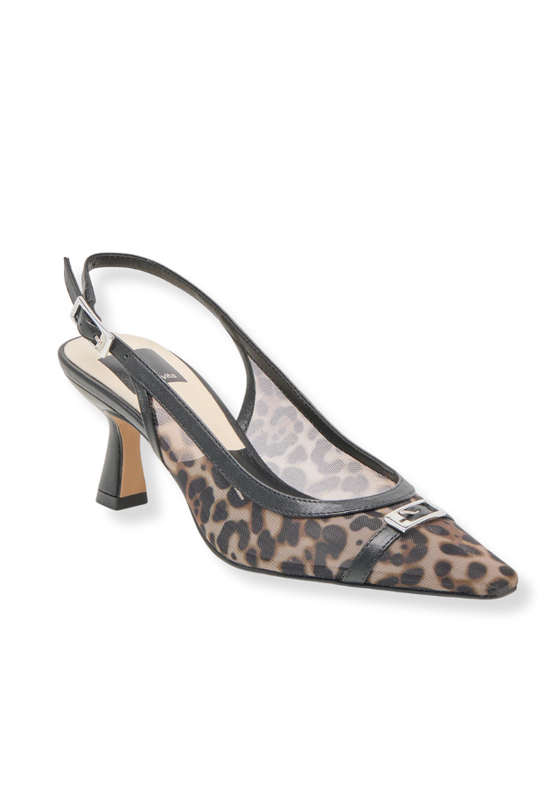 LORINE’s vintage-inspired details are sophisticated in any decade. This slingback heel with metal detailing is made modern with airy mesh in classic colorways and bold leopard print.