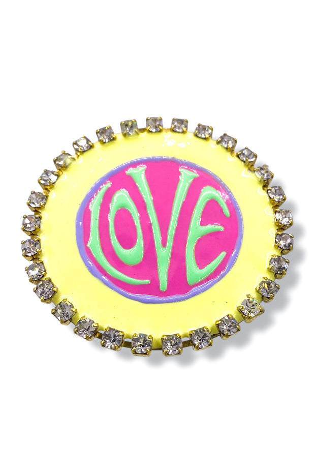 Embrace your quirky side with our Love Psycho Brooch! Made in Canada from antique gold plated brass, this 1" hand-painted enamel brooch adds a playful touch to any outfit. Stand out from the herd with this unique accessory.