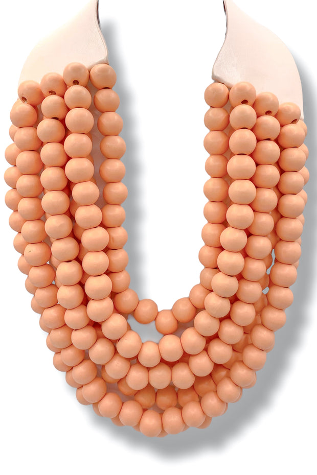 This layered necklace features wooden beads that will add a touch of sophistication to any outfit. Make a statement with this unique and elegant piece, perfect for any occasion.
