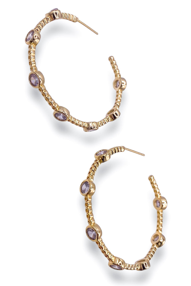 These exquisite earrings feature a timeless gold hoop design adorned with sparkling crystal detailing. The perfect accessory for any occasion, the Lucy Earrings add a touch of elegance and sophistication to any outfit. Elevate your style with these stunning earrings.