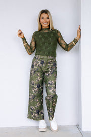 Come Over Olive Floral Print Wide Leg Pant $34.00