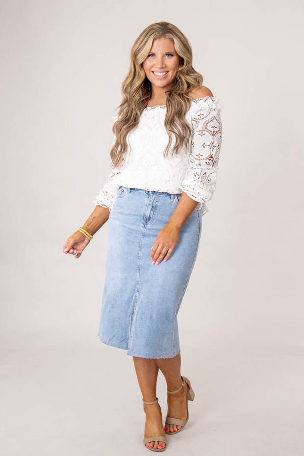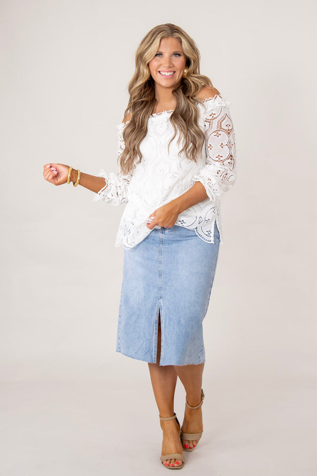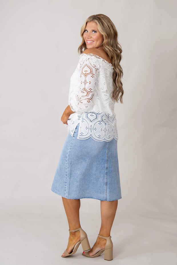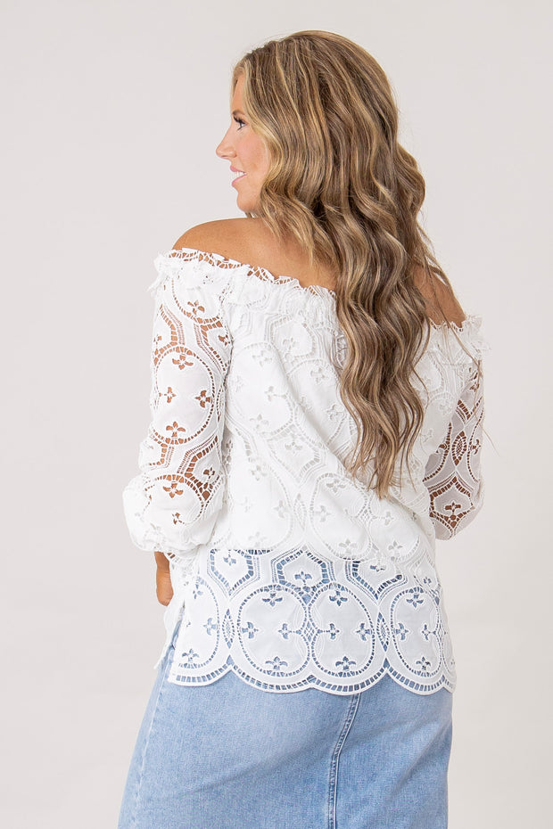 This Marcy Lace Top features an elegant off the shoulder design and is fully lined for added comfort. Its versatile style is perfect for any occasion, making you look chic and sophisticated. Add this top to your wardrobe for a touch of timeless beauty.