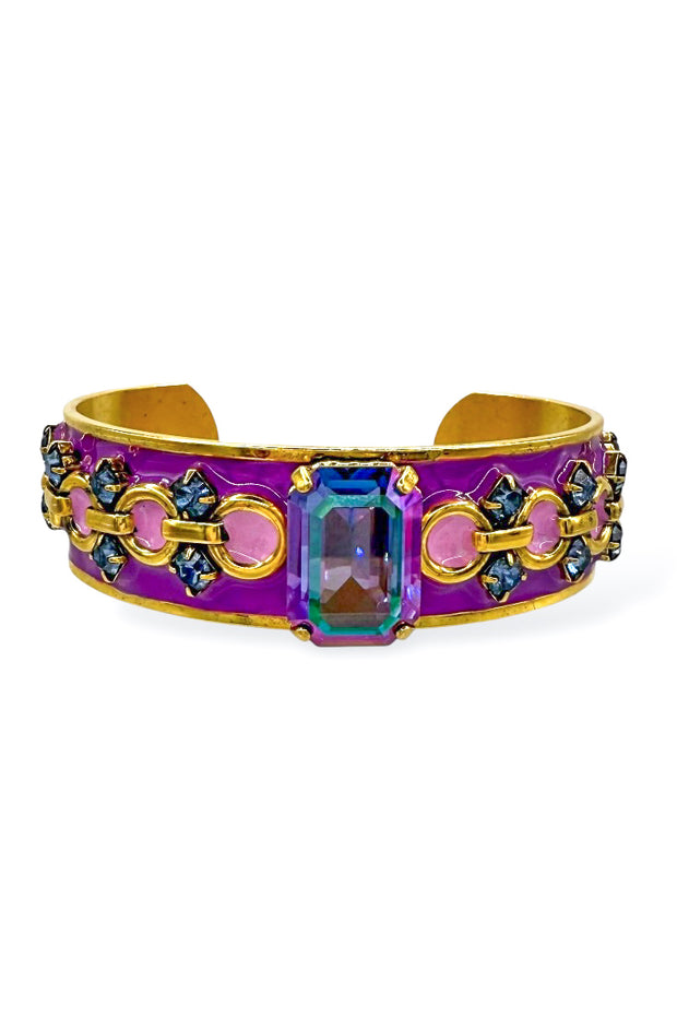 Rock the Maribel Cuff and show off your edgy style! It's sleek and modern style is adjustable, hand-painted enamel and adorned with pops of color. Handmade in Canada, it guarantees both quality and style - so slip it on and make a lasting impression.