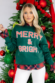 Cozy forest-inspired sweatshirt featuring a cheerful Merry & Bright graphic on the front. Designed with a rounded neckline, long sleeves, and waist-length cut for comfortable everyday wear.