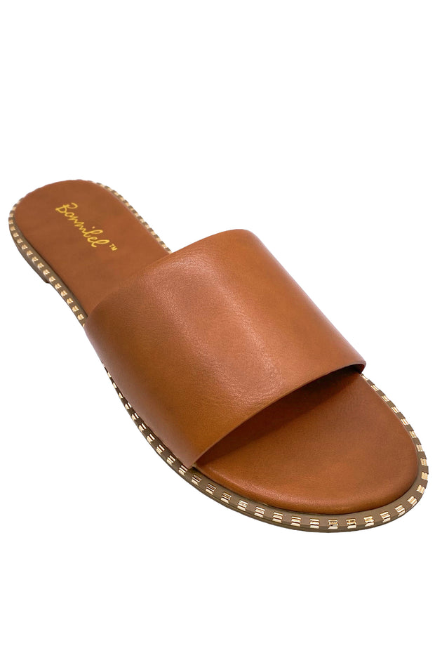 The Micah Sandal features a classic slide design adorned with elegant gold details. With a timeless style and luxurious accents, these sandals are perfect for adding a touch of sophistication to any outfit. Experience the perfect blend of comfort and style with Micah.