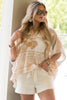 This top features a flattering v-neckline, comfortable dolman short sleeves, and an oversized silhouette for a relaxed fit. Crafted from high-quality printed material, it's both stylish and comfortable.