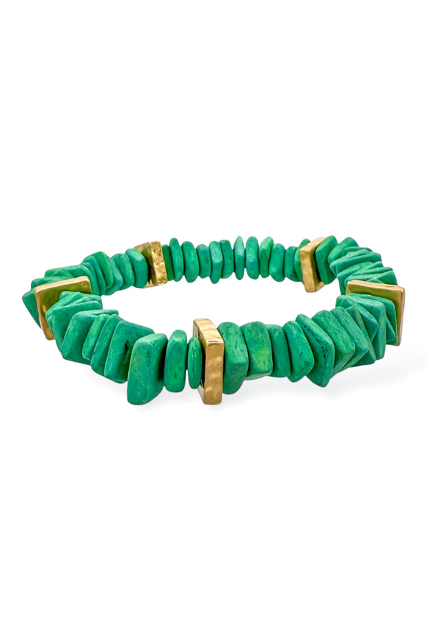 This bracelet features timeless stone beads and gold accent beads, perfect for any occasion. This bracelet is perfect for stacking or wearing on its on. Add to any set for the perfect look!