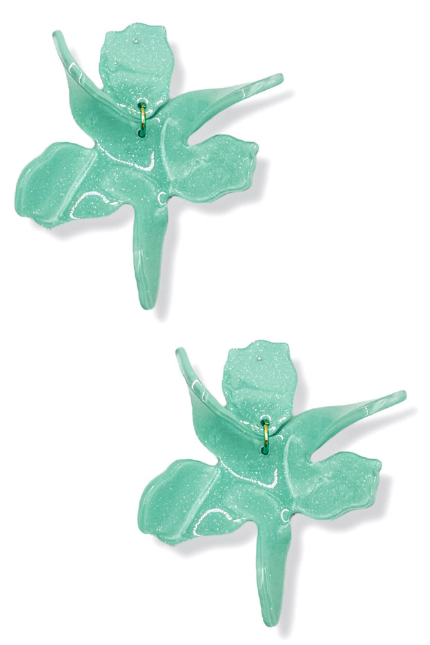 These beautiful floral glittered resin dangle earrings are perfect for any occasion. Bring some unique and elegant style to your wardrobe.