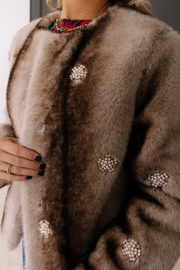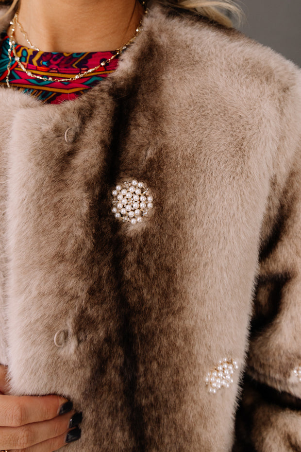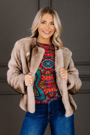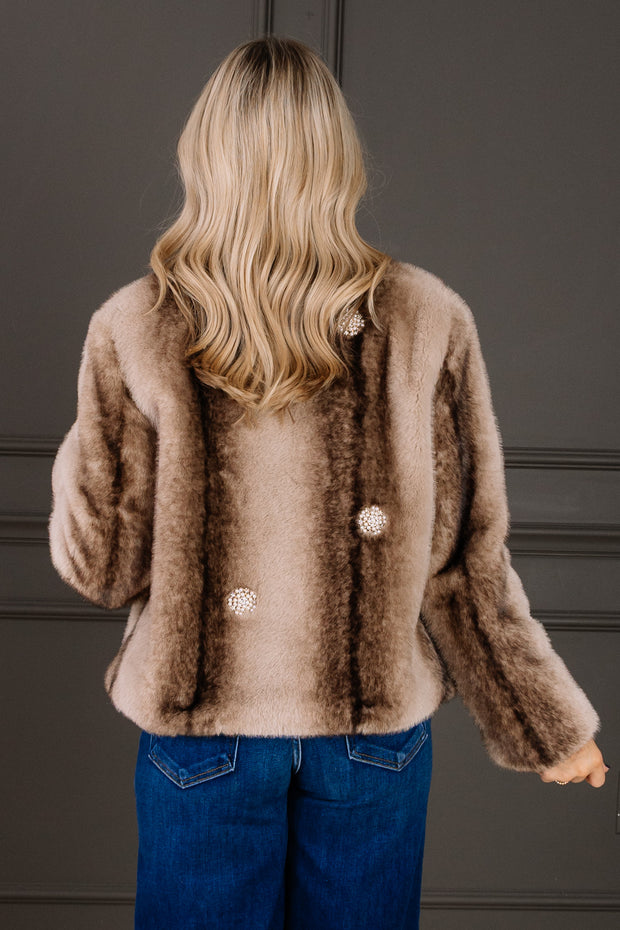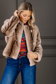 Star Of The Show Mocha Faux Fur Long Sleeve Jacket