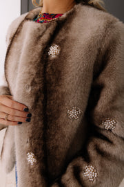 This Jacket features a rounded neckline and long sleeves for cozy coverage. Its waist-length cut and button-down front provide a flattering fit, while the soft faux fur material ensures warmth and style.