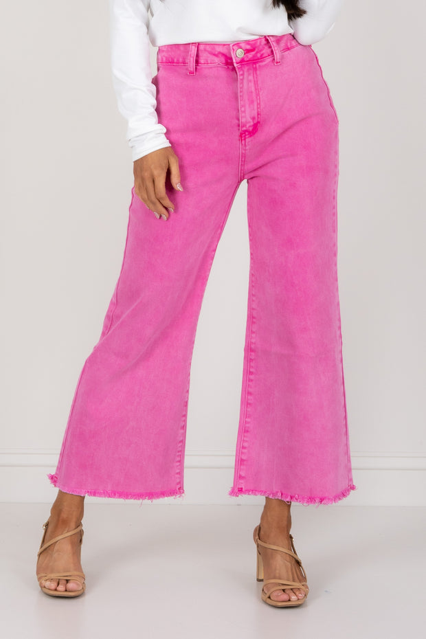 Elevate your denim game with these jeans. The high waistline offers a flattering fit, while the frayed hem adds a playful touch. The front zip button closure and functional pockets provide convenience without sacrificing style.