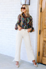 The Tribal Moonstone Corduroy Wide Leg Pant features front and back pockets, a zip and button closure, and a wide leg design. Made from soft corduroy, it offers both style and comfort for everyday wear.