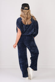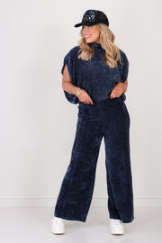 These Pant features a soft velvet fabric for comfortable wear. Its elastic pull-on waistband ensures an easy fit, while the wide leg silhouette offers a relaxed and stylish look. Perfect for casual or dressy occasions.