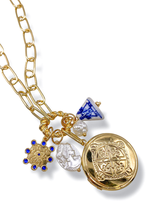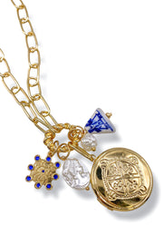 The delicate chain and intricate charm detailing exude sophistication and exclusivity. Add a touch of elegance to any outfit and make a statement with this timeless piece of art.