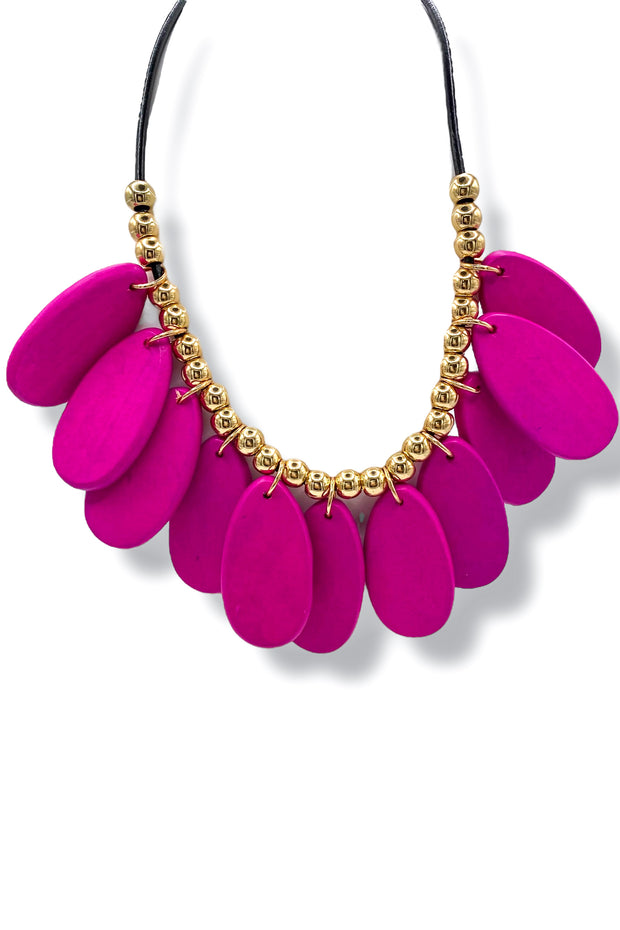 Made with teardrop wood beads, this statement piece is a symbol of elegance and sophistication. Elevate any outfit with its subtle yet stunning design. Make a statement that is uniquely yours.