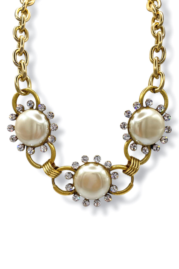 This exquisite chain necklace boasts a stunning pearl and crystal detailing, adding a touch of sophistication to any outfit. Elevate your style and radiate luxury with this piece.