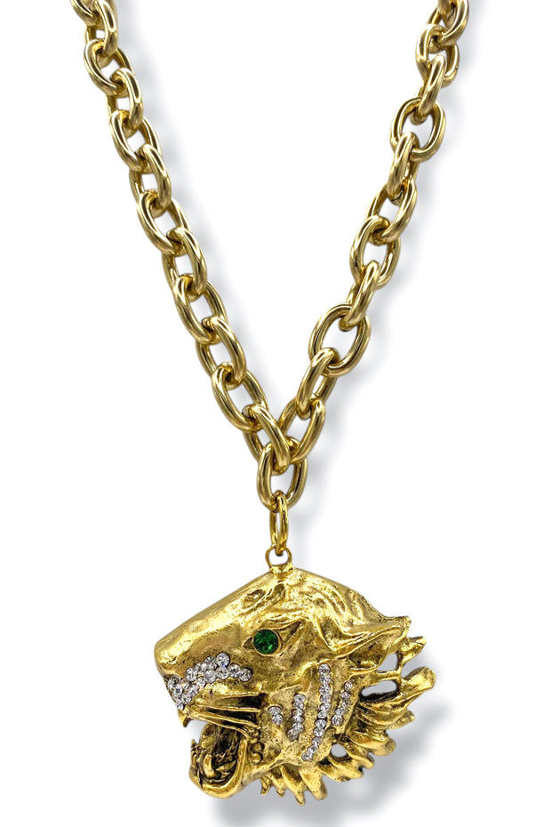 This exquisite piece features a tiger pendant hanging from a delicate chain, definitely a showstopper . Add a touch of luxury to any outfit with this statement necklace.