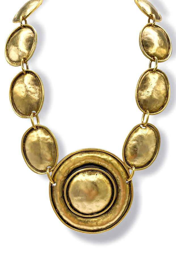 Crafted from luxurious gold, the Yochi Total Knockout Necklace boasts a stunning circle pendant. Its elegant design adds a touch of sophistication to any outfit. Elevate your look with this timeless piece that effortlessly combines style and quality.