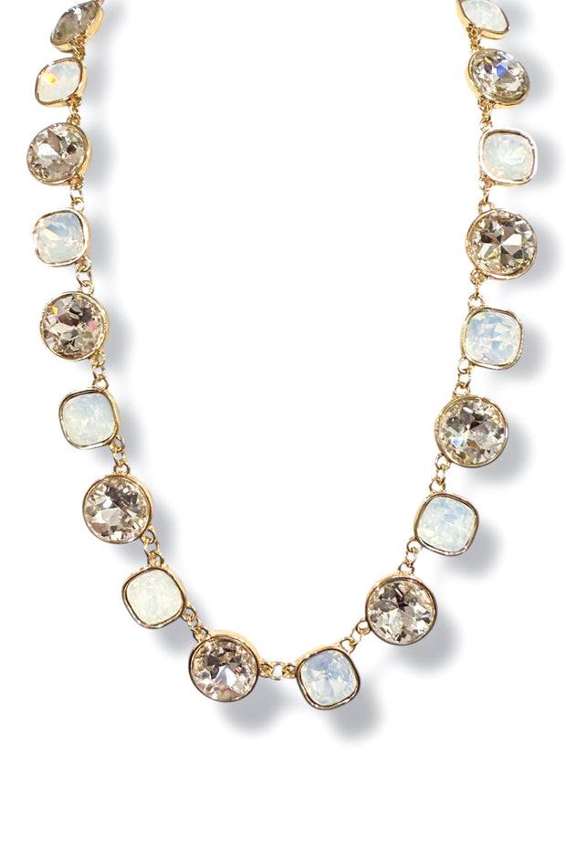 Elevate your look with this necklace. Featuring a round square stone bezel cluster design, this link necklace adds a subtle sparkle to any outfit. Its elegant simplicity makes it perfect for daily wear or special occasions.