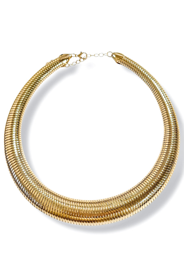 This necklace features a gold spring-style design that adds a simple yet stylish touch to any outfit. Its versatile look makes it easy to wear every day.