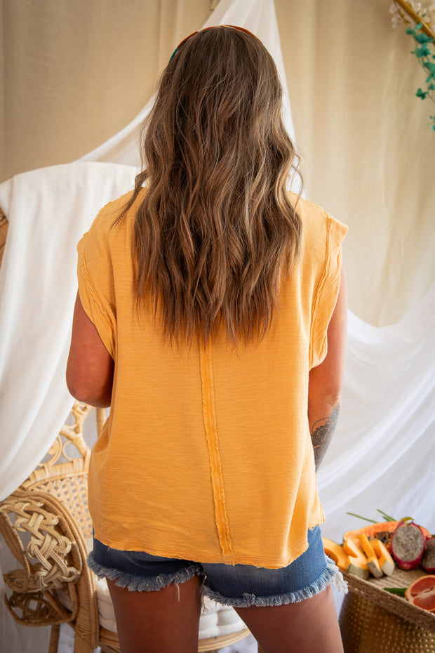 Introducing Our Time Tee from Free People. This ivory sleeveless top features a rounded neckline, front pocket, and breathable material for ultimate comfort. Perfect for any occasion, this versatile top will keep you cool and stylish all day long.
