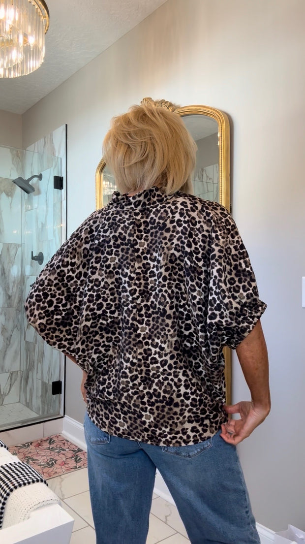 This short sleeve top combines breathable, comfortable material with a bold leopard print and a neat top collar, making it a stylish and easy-to-wear choice for everyday comfort.