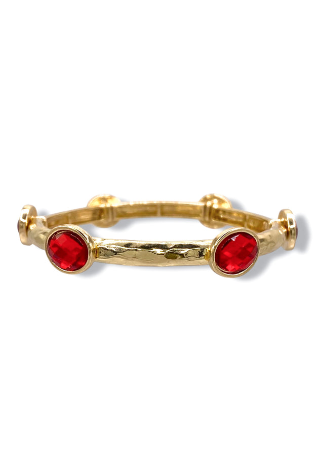 This elegant gold stretch bracelet features a stunning aqua pendants, adding a pop of color to any outfit. This bracelet is going to be a go to.