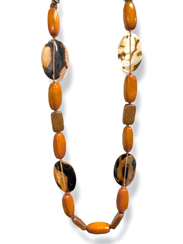 Earthy meets elegant in this stunning shell and wooden beaded necklace, crafted to make a statement while remaining effortlessly wearable. Featuring a mix of natural wooden beads and lustrous shell pieces, this necklace brings beachy texture and organic charm to any outfit.