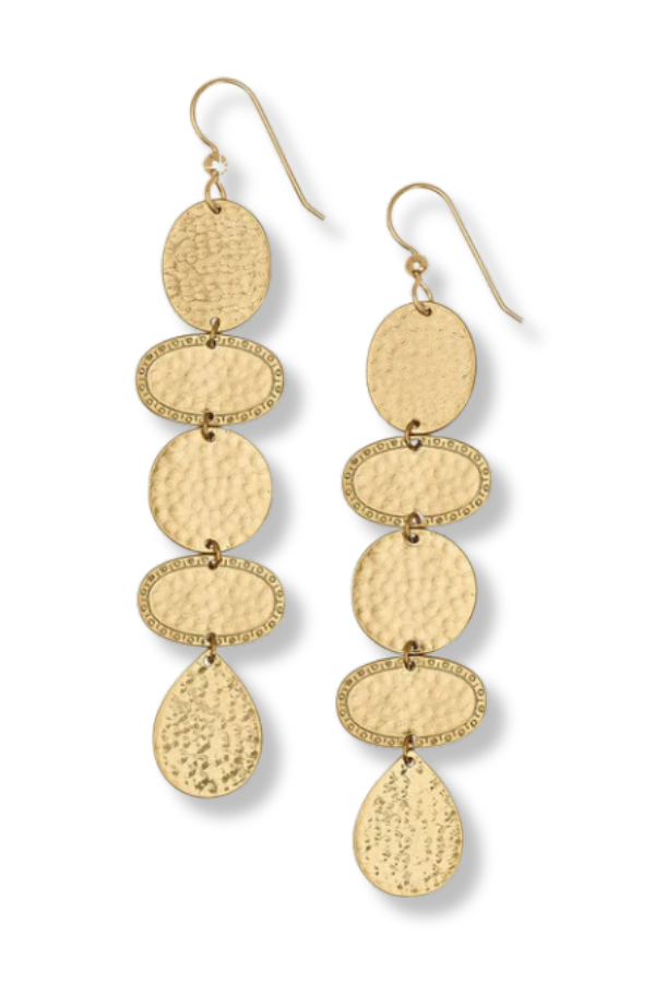 Expertly crafted with a touch of elegance, the Palm Canyon Earrings by Brighton are a must-have accessory. Boasting long, gold french wire hooks, these earrings add a touch of sophistication to any outfit. Elevate your style with these beautiful and timeless earrings.