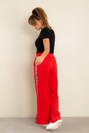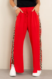 The elastic pull on waistband provides comfort while the side pockets and leopard detailed side add a touch of wild luxury. Its wide leg silhouette will make you the envy of any fashion aficionado.