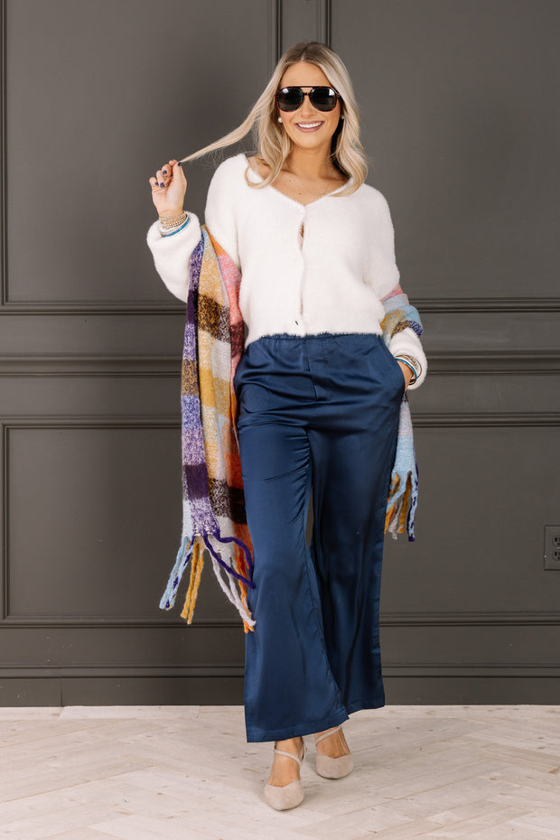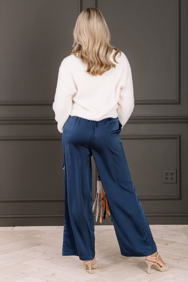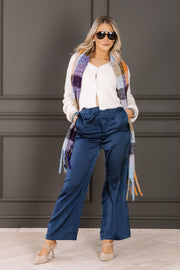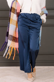 The High Enough Teal Wide Leg Pull On Pant combines comfort and style with breathable material and a relaxed fit. It features an elastic pull-on waistband and convenient side pockets, making it perfect for all-day wear.