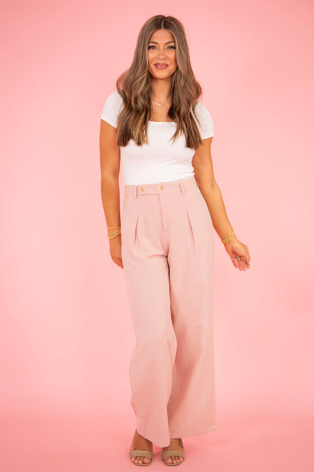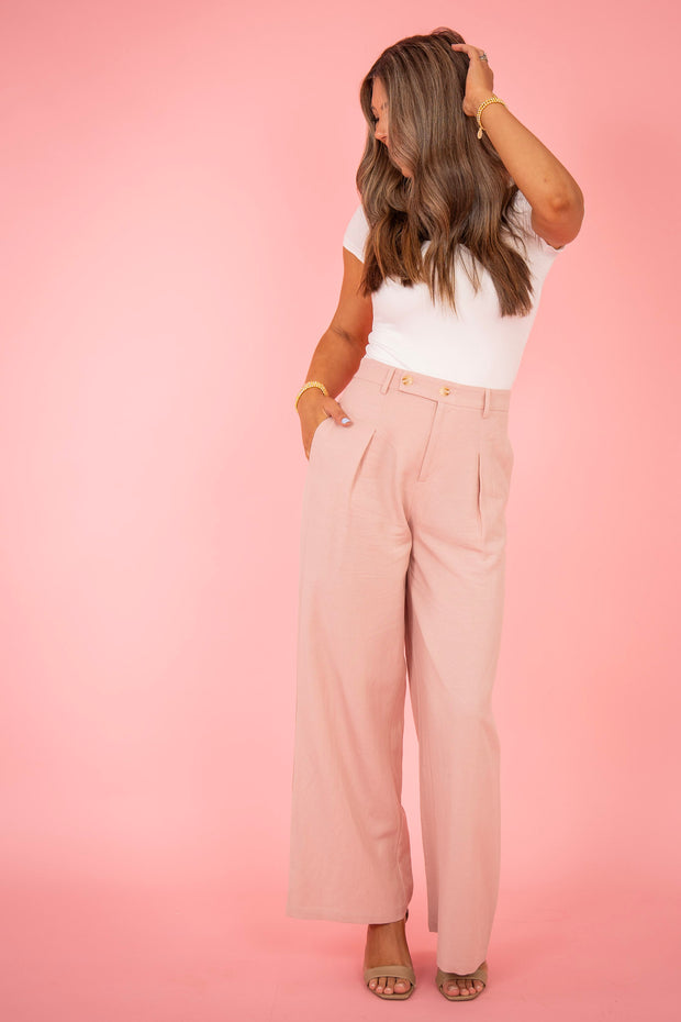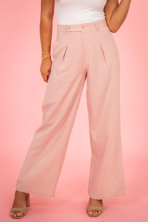 The Brinley Pant features a front zip button closure and side pockets for practicality. Its linen-like material and classic trouser look provide a comfortable and stylish option for any occasion. Perfect for those looking for a functional and fashion-forward pant.