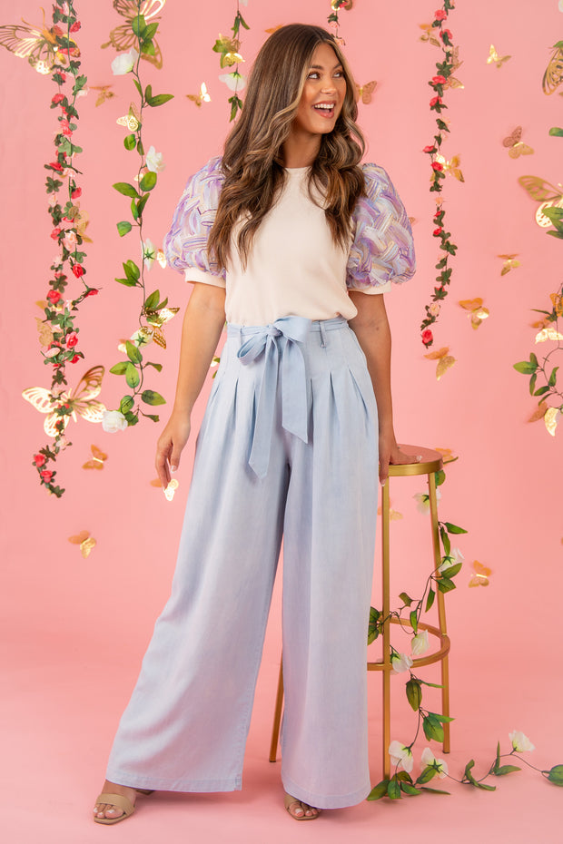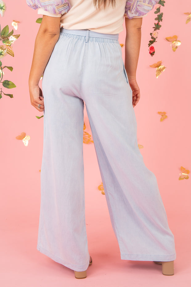 The Easy Breezy Pant offers a chic denim-like look with a flowy fit, perfect for any occasion. Its elastic waistband ensures a comfortable and secure fit, while the tie detailing adds a touch of sophistication. The pleated front adds a subtle element of texture to elevate any outfit.