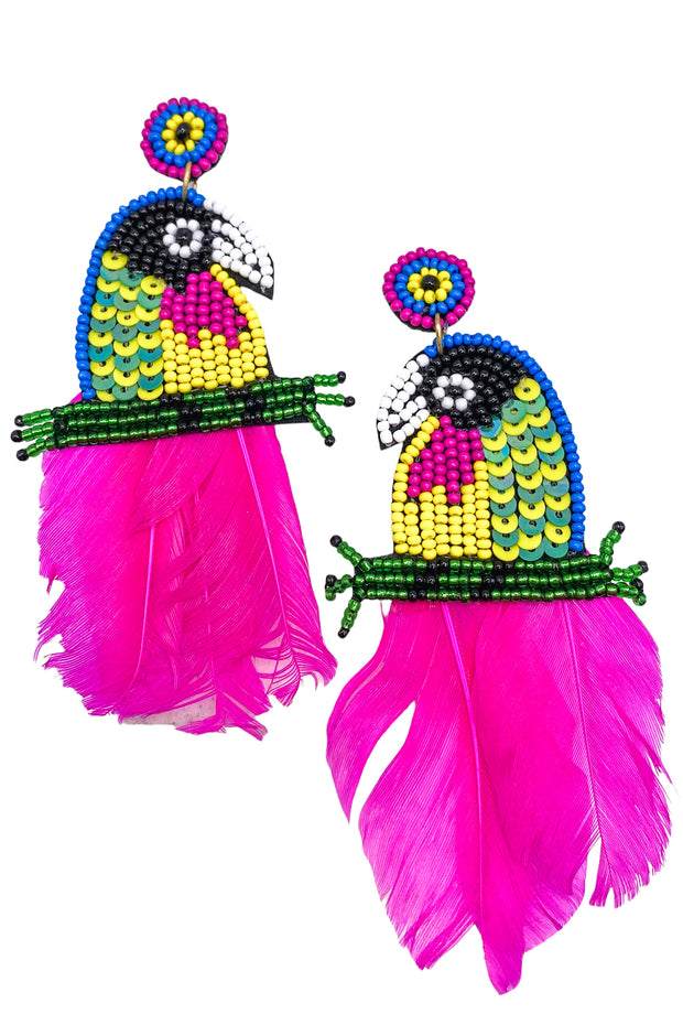 Expertly crafted with hand beaded details and a lightweight design, our Party Parrot Earrings from Treasure Jewels add a touch of playful elegance to any outfit. With their charming parrot design, these earrings are sure to make a statement and turn heads at any gathering or event.