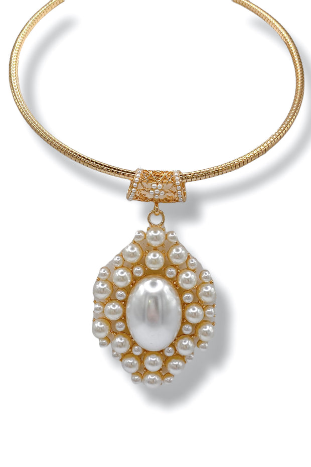 The statement pearl detailed necklace adds a touch of sophistication and elegance to your look. Make a bold and luxurious statement with this luxury piece.
