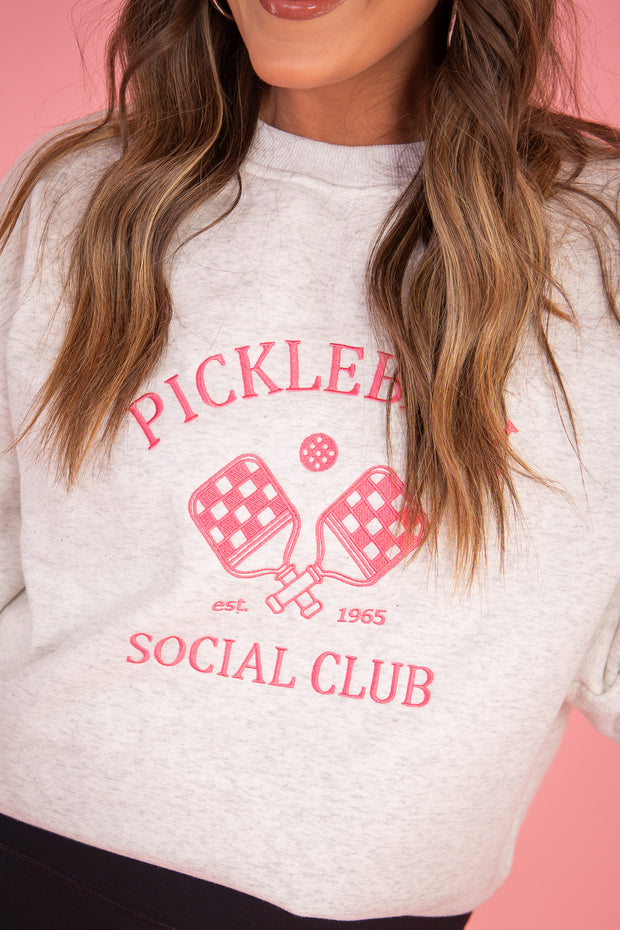 Stay warm while showing off your love for pickleball with our Pickleball Social Club Sweatshirt. This high-quality sweatshirt features a cozy fleece interior, embroidered detailing on the front, and a classic crew neckline. Perfect for cheering on your pickleball team or wearing on a casual day out.
