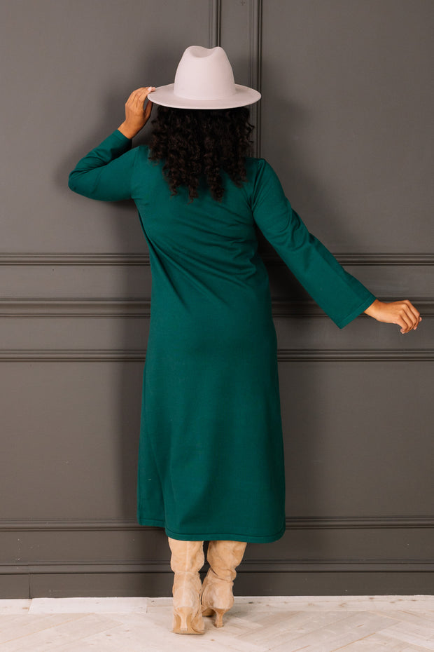 Pine Green Long Sleeve Maxi Sweater Dress