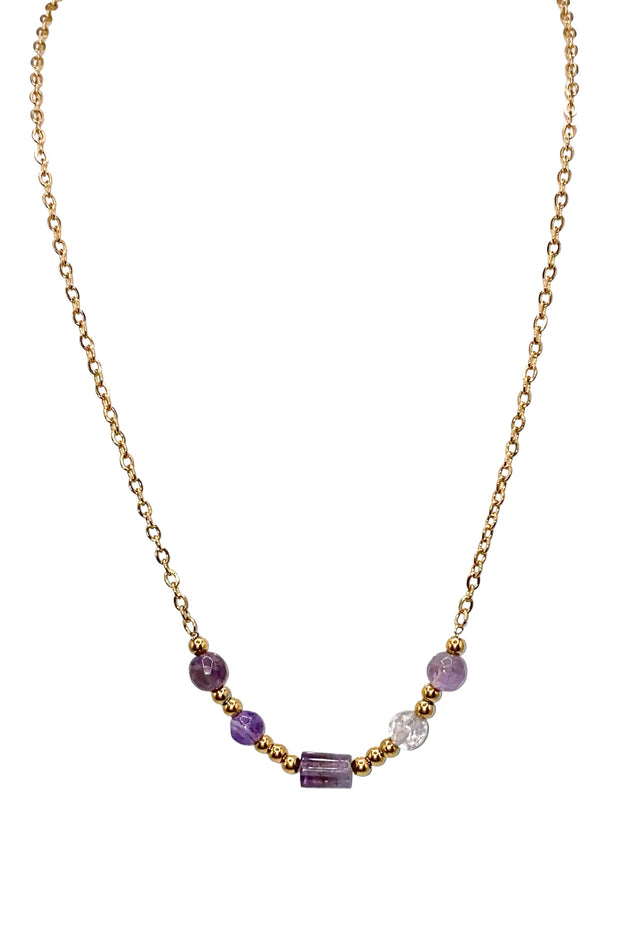 Transform any outfit with our Pippa Necklace. The elegant purple beads on a gold chain make a statement and add a touch of sophistication to your ensemble. Perfect for any occasion, it's a must-have for any fashion-forward individual.