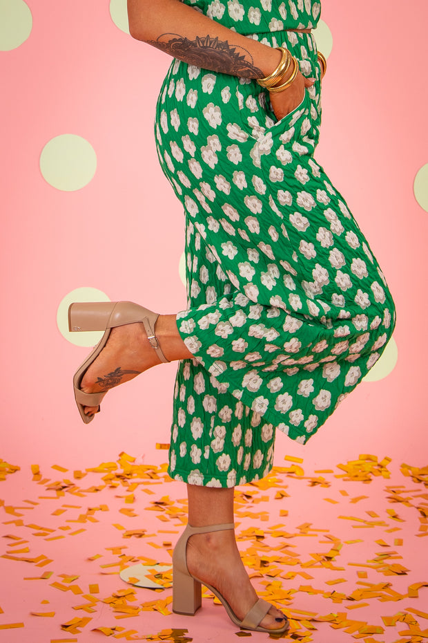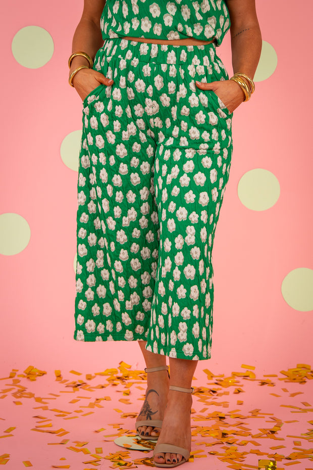 Upgrade your wardrobe with our You're In Luck Pant. Designed with a stylish floral print, this cropped silhouette offers a comfortable and chic look. Keep your essentials close with the convenient side pockets and an elastic pull on waistband for the perfect fit. Look effortlessly stylish in this must-have pant.