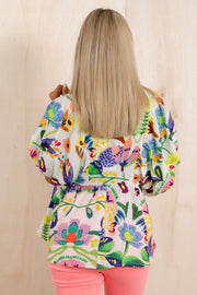 Expertly designed for both style and comfort, this top features a flattering v neck and top collar, along with eye-catching puff sleeves. The hook closure in the front adds a touch of sophistication. Made from a breathable and comfortable material, this top is perfect for any occasion.