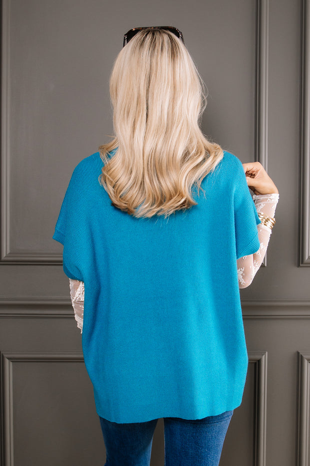 The Take Me Back Teal Mock Neck Short Sleeve Sweater Top offers a comfortable fit with its breathable material. Its mock neckline adds subtle style, while the short sleeves keep you cool and relaxed. Perfect for everyday wear, this top blends comfort and casual elegance.