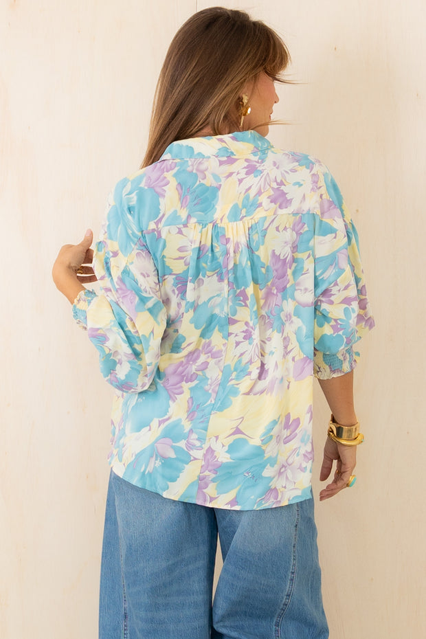 The sophisticated abstract print and top collar add a touch of luxury to the classic button down front. Perfect for any occasion, the long sleeves provide coverage while maintaining a flattering silhouette.