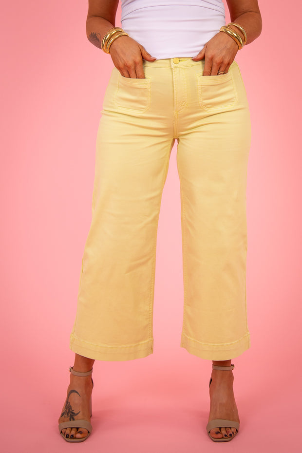 A versatile addition to any wardrobe, the Limelight Wide Leg Pant boasts a stretchy and comfortable silhouette, perfect for all-day wear. The wide leg design adds a touch of sophistication, while the functional pockets and front button closure offer practicality. Experience effortless style and functionality with these timeless pants.