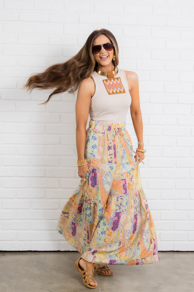 The elastic pull on waistband offers a secure fit, while the paisley print adds a trendy touch. The wide leg bottom provides a relaxed silhouette that flatters all body types.